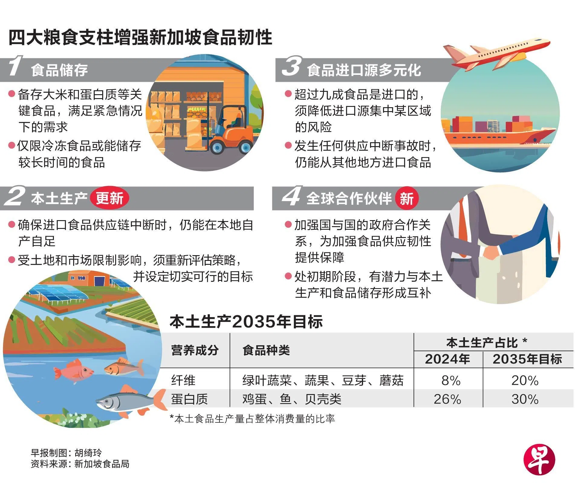 民以食为天,稳定食品供应是人们赖以生存的重中之重。在寸土寸金的新加坡,推动本土生产更显重要,但仍无法全面实现自产自足,须通过其他渠道增强食品供应韧性。