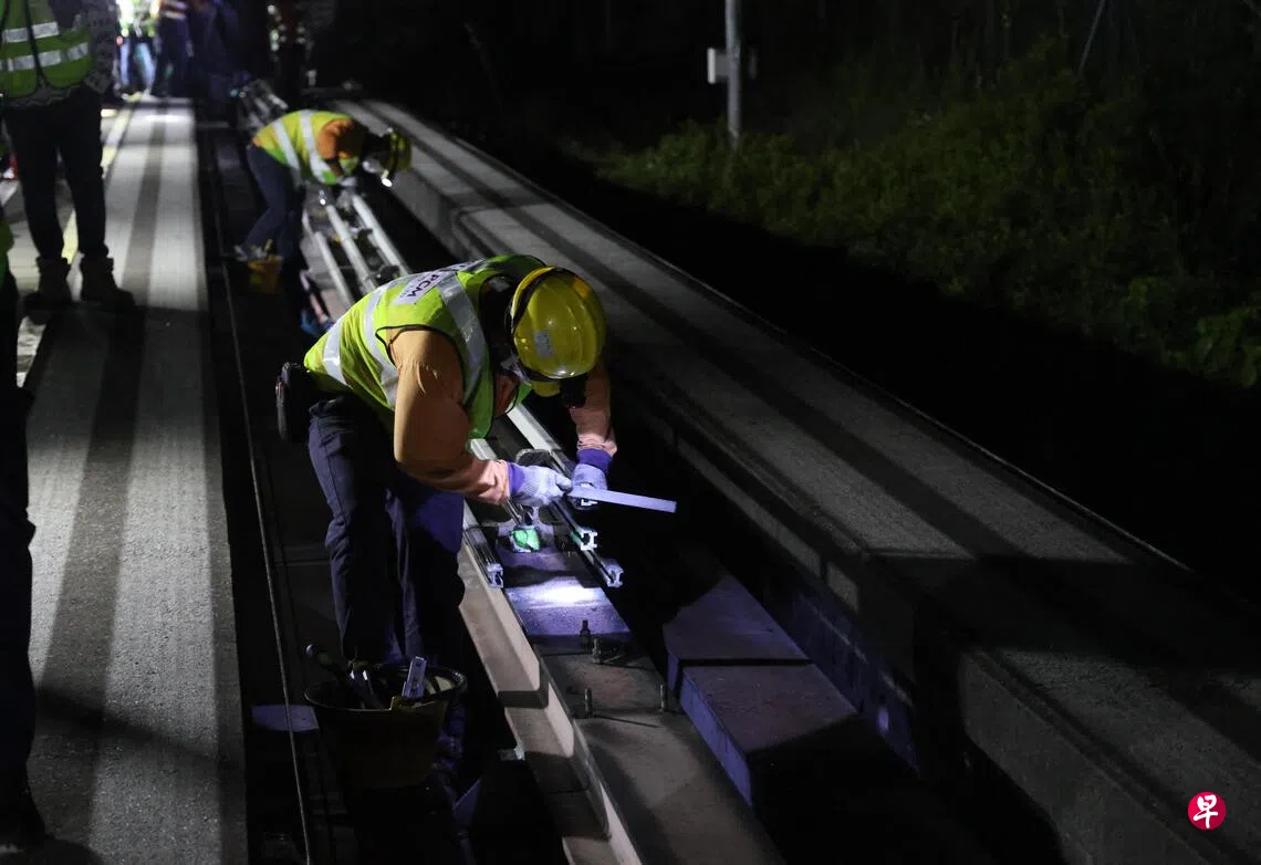 德万德兰说,比起热焊接,螺柱焊的速度更快,能在有限时间内高效作业。工程团队每替换一段供电轨,都会仔细测试确保正常运作。“安全还是最重要的,若有雷电风险,我们会立即停工。夜晚潮湿,也会提醒员工补充水分。”