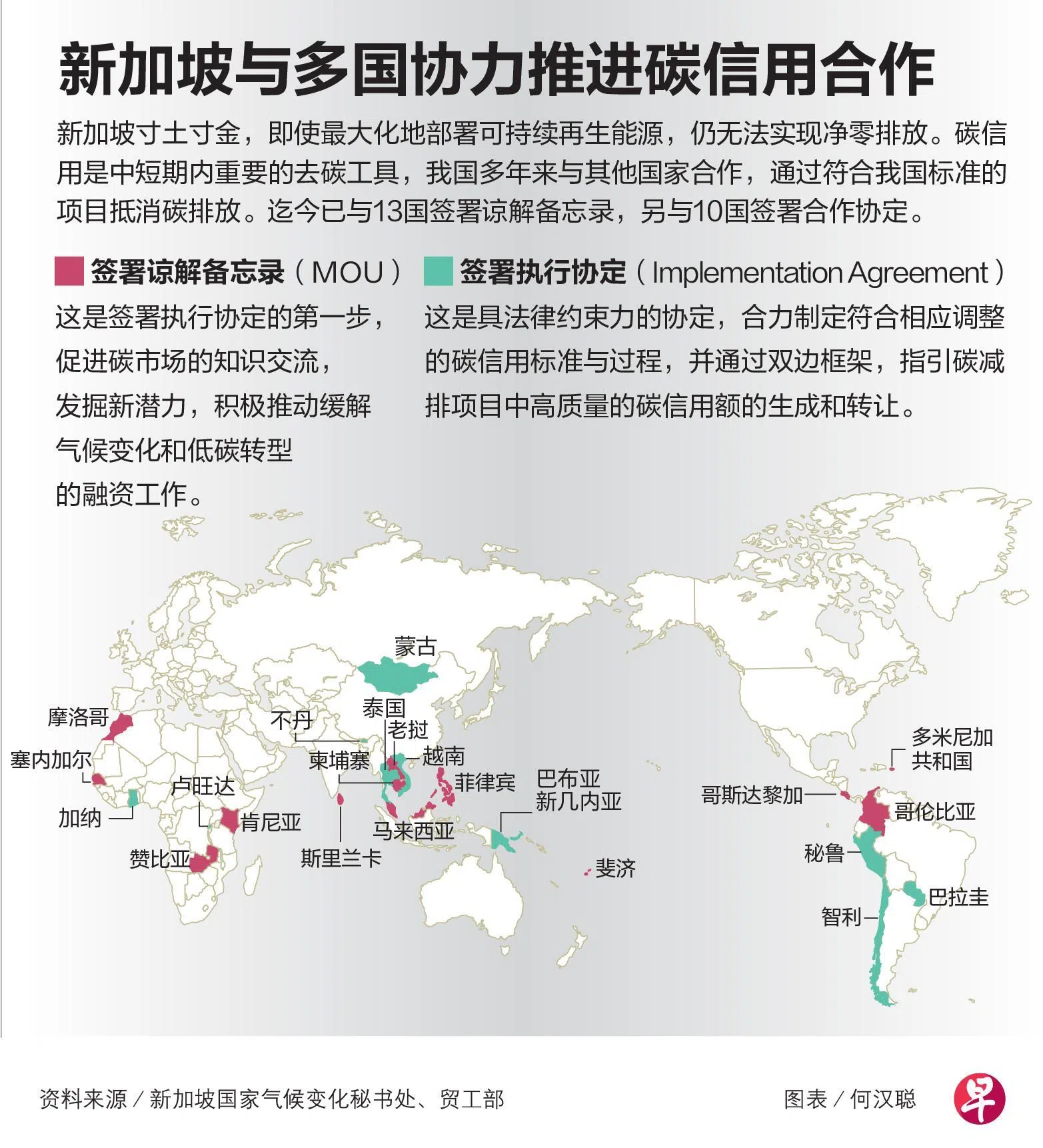 新加坡也是“发展碳市场联盟”的发起国之一。这是首个由政府主导的碳市场联盟,由我国气候行动大使孟文能领导,目前已有11国加入。