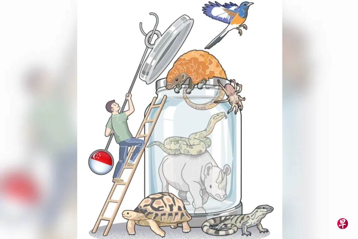 国家公园局答复《联合早报》询问时说,从2019年至2024年,执法人员每年在我国边境侦破一至18起非法野生动物进口案。至于野生动物部件和产品的走私活动,在2020年至2024年间每年平均有近10起。