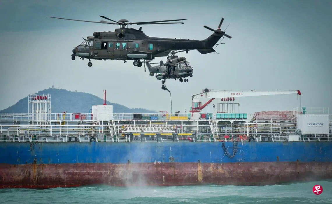 一艘可疑船只星期五驶入我国海域,不但无视海事及港务管理局的广播指令,更对警察海岸卫队舰艇开火,对我国安全造成威胁。多个海事部门联合出动,将危险船只隔离拦截后,武装部队特别行动部队从海上和空中登船、压制恐怖分子,民防部队跟着扑灭船上火势、安全转移人质,成功化解了一场危机。