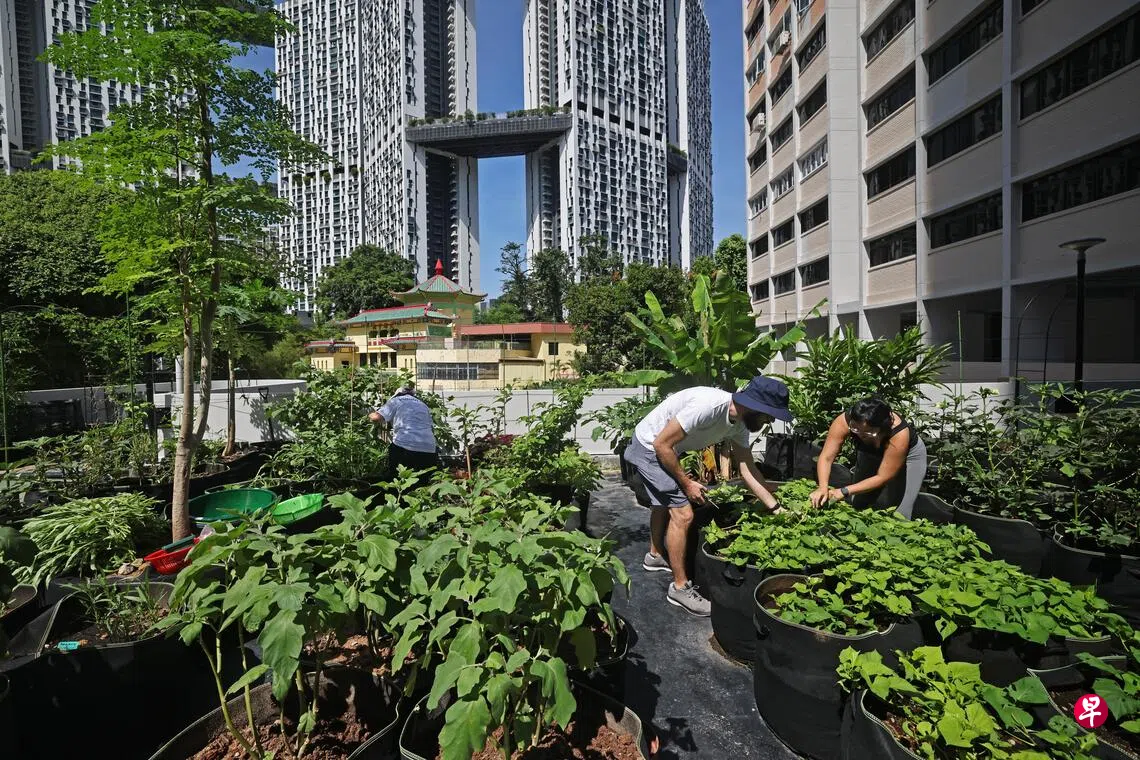 丹戎巴葛的全新顶楼花园农场,把小贩中心的厨余变成肥料,种植超过60种蔬果,所有收成都免费分发给年长者和居民。