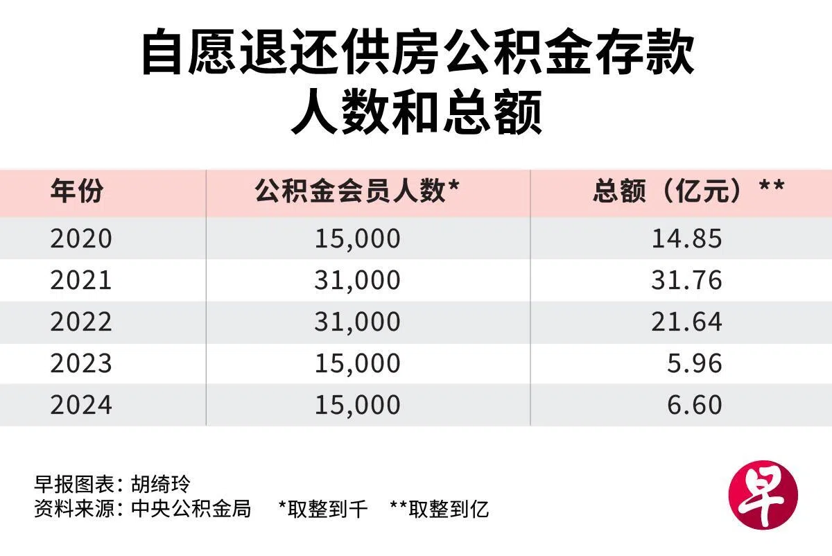 根据中央公积金局提供的数据,VHR在2021年达到高峰,当年有3万1000名会员自愿偿还约32亿元,2022年同样有3万1000名会员退还约22亿元。
