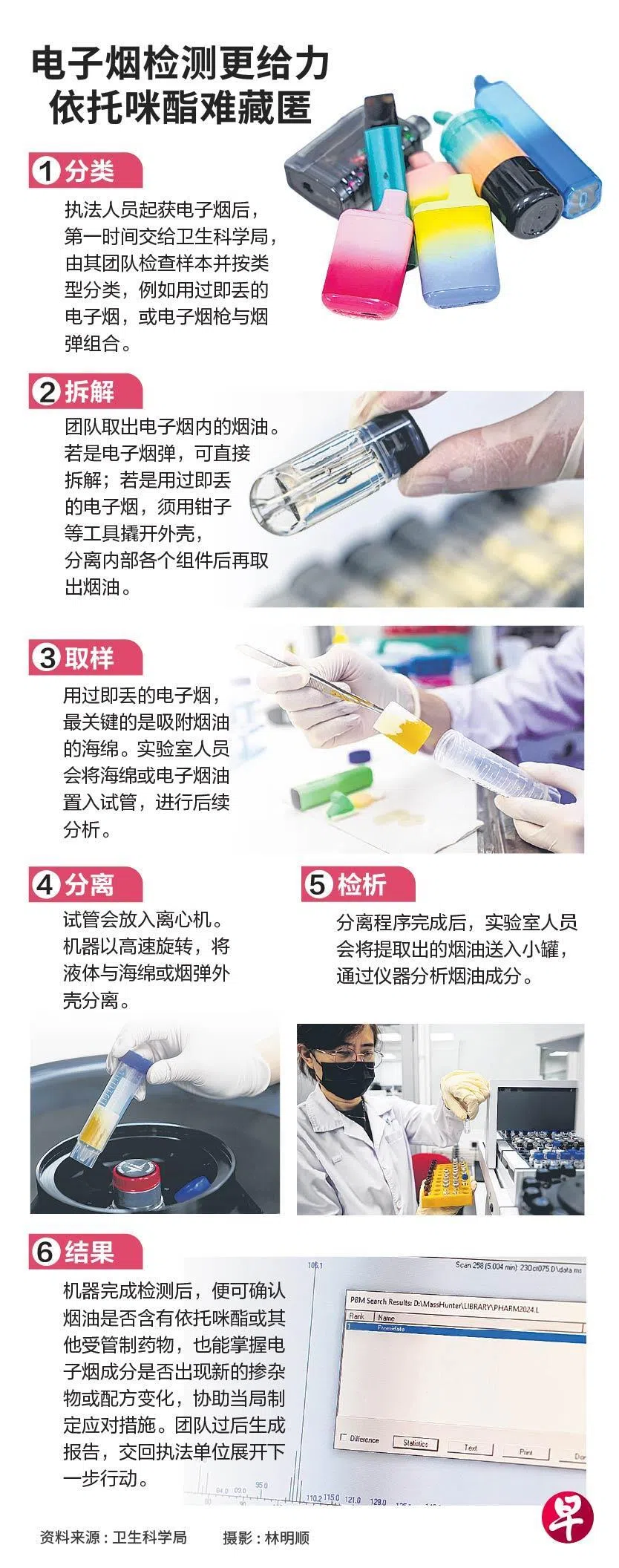 她补充,药物化验室密切关注区域和全球电子烟趋势,并持续检测本地查获样本,以确认本地电子烟是否出现新型受管制物质,或混入其他药物。