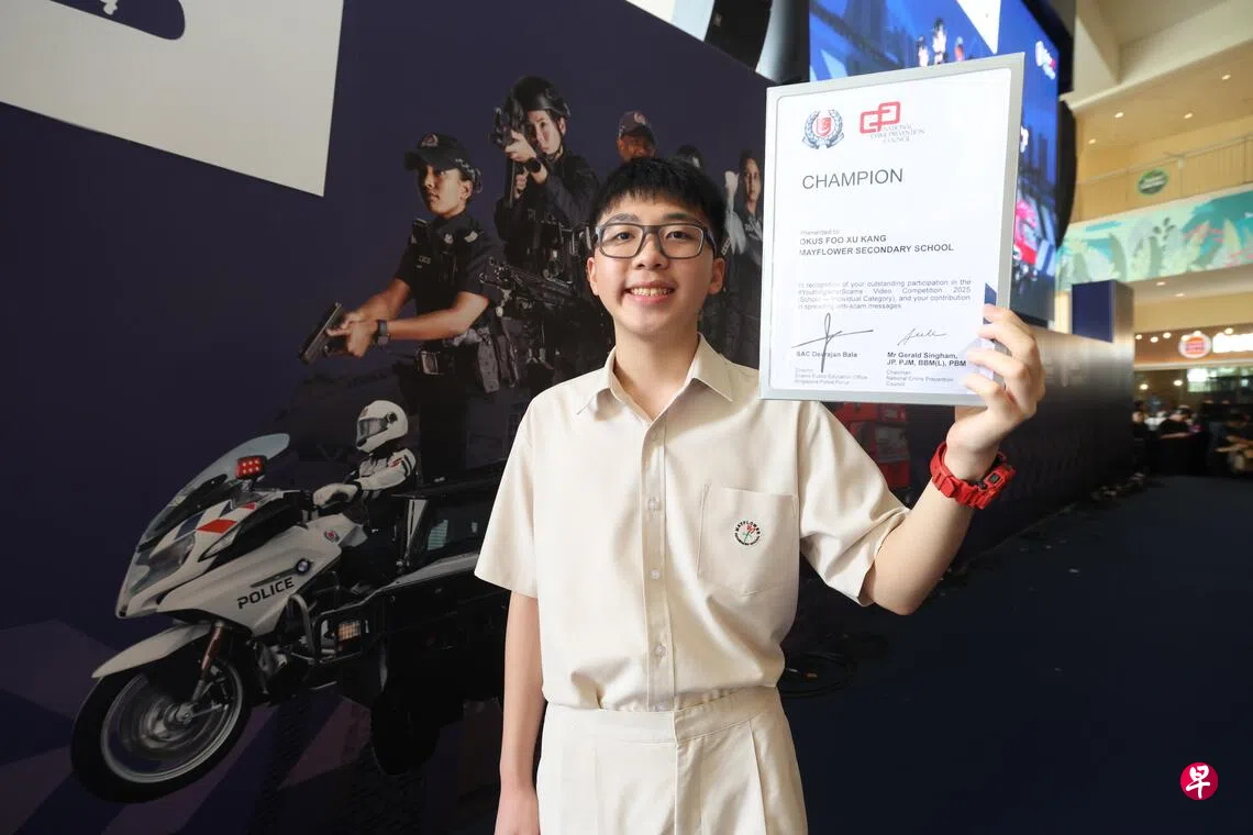 父母曾被诈骗,启发中一学生关注本地诈骗问题,在“青年反诈骗”视频比赛中斩获首奖。