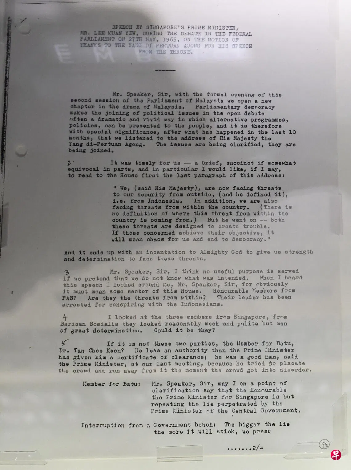 ⑤ 李光耀1965年5月27日在马来西亚联邦议会演说的逐字稿