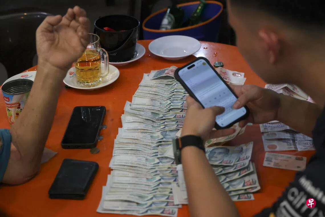 《联合早报》记者星期三(3日)晚上9时左右,随警方突击黄埔通道第74座咖啡店,目击八名59岁至88岁的七男一女,因涉嫌非法赌马被捕。