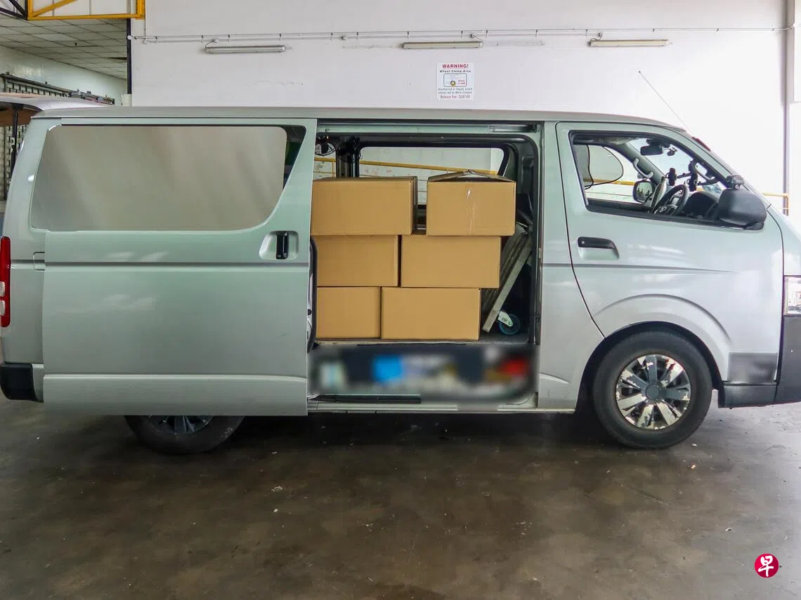 11月30日,执法人员到班丹环道一座工业楼的一个单位展开执法行动。他们观察到一辆新加坡注册的货车倒退进入工业楼的装卸区,三名男子接着将多个棕色箱子装入货车。