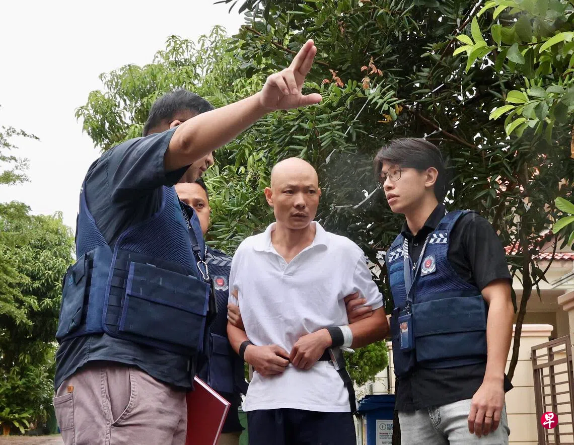 星期一(12月15日)上午约10时56分,黄晓宗由一组警员押回行窃地点之一的泉通道,协助警方重组案情和厘清细节。