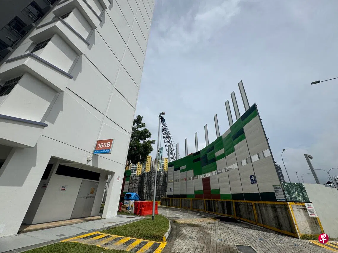 第160B座组屋共有98个单位。记者星期二上午走访,发现这座组屋外即是跨岛线—榜鹅延长线里维拉地铁转换站的施工范围,相距不远。