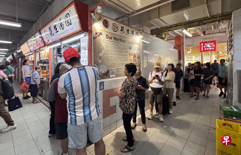 《新明日报》记者星期天早上9时走访牛车水大厦小贩中心时,知名“美芝律花生汤圆”早已大排长龙,约有30人从摊位前排至摊位后方。