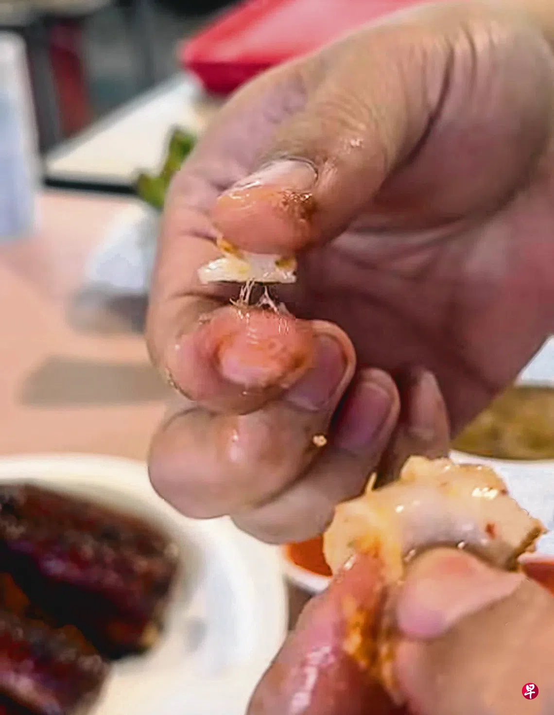 “味道很恶心,苏东口感跟鱼肉一样,很软、容易撕碎,甚至感觉就在口里融化掉。任何经常吃海鲜的人都知道,这样肯定不是正常的质地。”