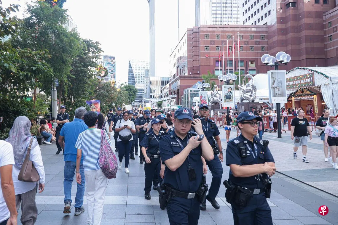 新加坡警察部队也调派了警员、辅警和保安人员,加强安保工作,同时在乌节路主要路口协助维护治安并疏散人潮。