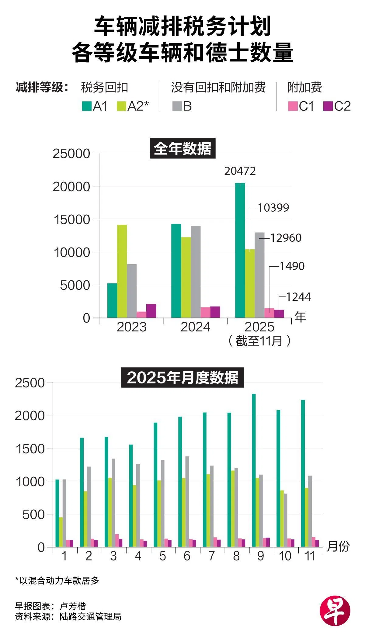 车辆减排税务回扣和电动车优惠今年9月宣布收紧后,促使更多人转购电动车,同月新注册的电动车数量创2023年以来单月最高。2025年9月至11月注册的电动车就占过去11个月总数的32%。
