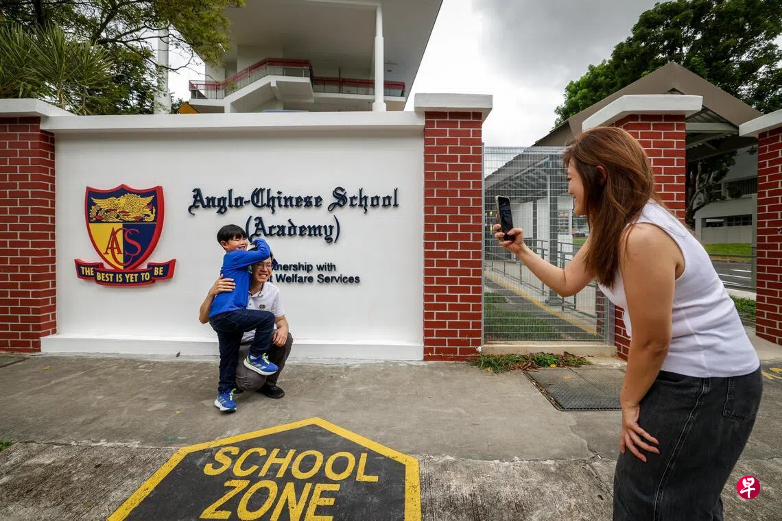 英华学院星期一(12月29日)举办迎新日,林俊强和林千千夫妇带着7岁儿子林孝豪去认识新学校。