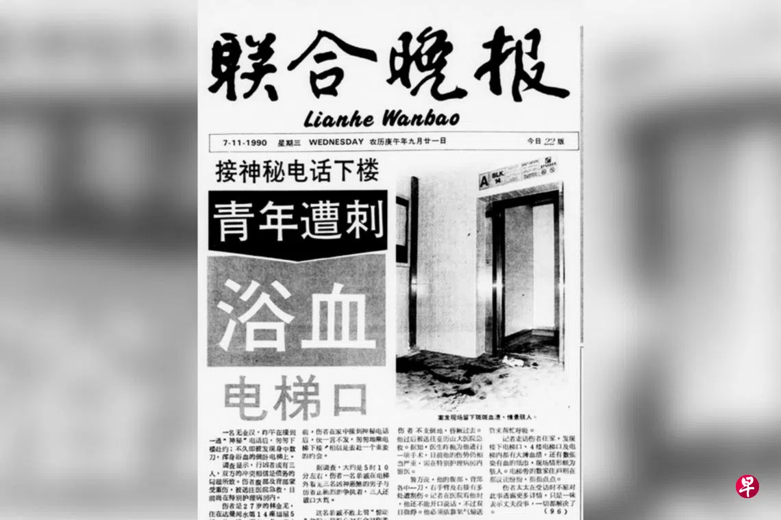 这起伤人案发生在1990年11月6日傍晚5时许,地点在达曼河水(Taman Ho Swee)第14座组屋。受伤的27岁男子案发后在昏迷不醒的情况下送院,身上除了腿部,背部和右手也被刺伤。他在一个月后出现肾衰竭的症状,最终身亡。