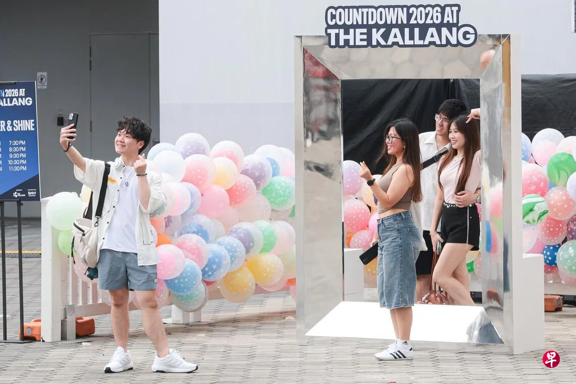 王诗慧(44岁,客服员)带着10岁女儿和她的好朋友,不到下午4时就来到加冷汇,占据了水上活动中心大屏幕旁观赏烟花的绝佳位置。晚些时候,她们的朋友会在下班后陆续前来,四户人家共12人一起度过2025年的最后一天,在欢声笑语中迎接新的一年。