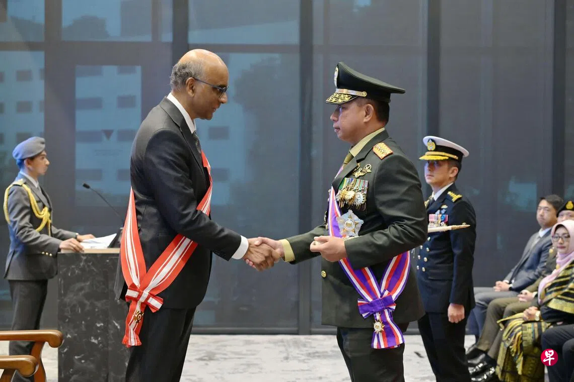 印度尼西亚国民军总司令阿古斯(Agus Subiyanto)上将在促进新加坡武装部队和印尼国民军合作方面做出重要贡献,获我国授予卓越服务(军事)勋章。