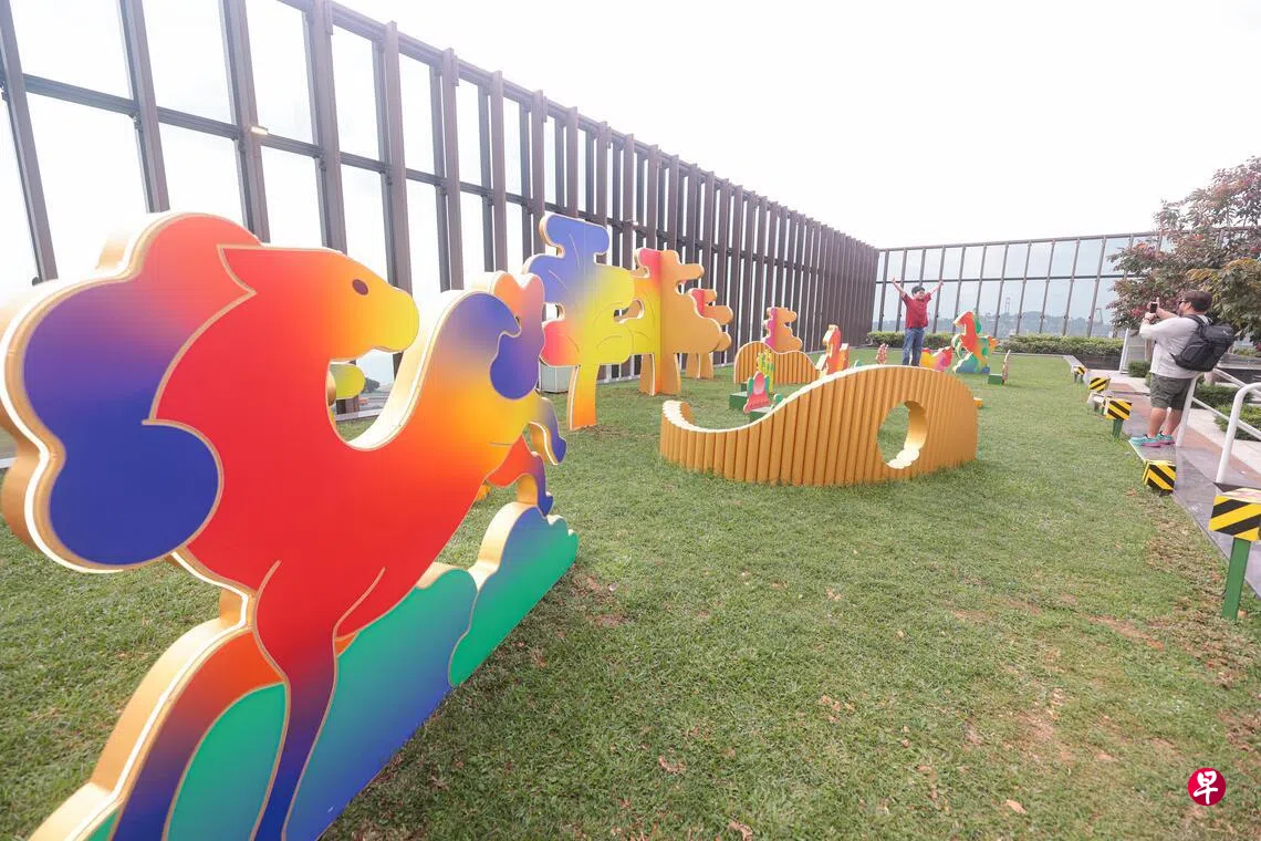 设置在华族文化中心天台花园的艺术装置“寻找Har马ny”(谐音Harmony,意指和谐),公众可欣赏色彩缤纷的马儿奔腾创意装置、好运亭,还有马年生肖运势展览。装置即日起至5月20日,每日早上10时至晚上10时开放。