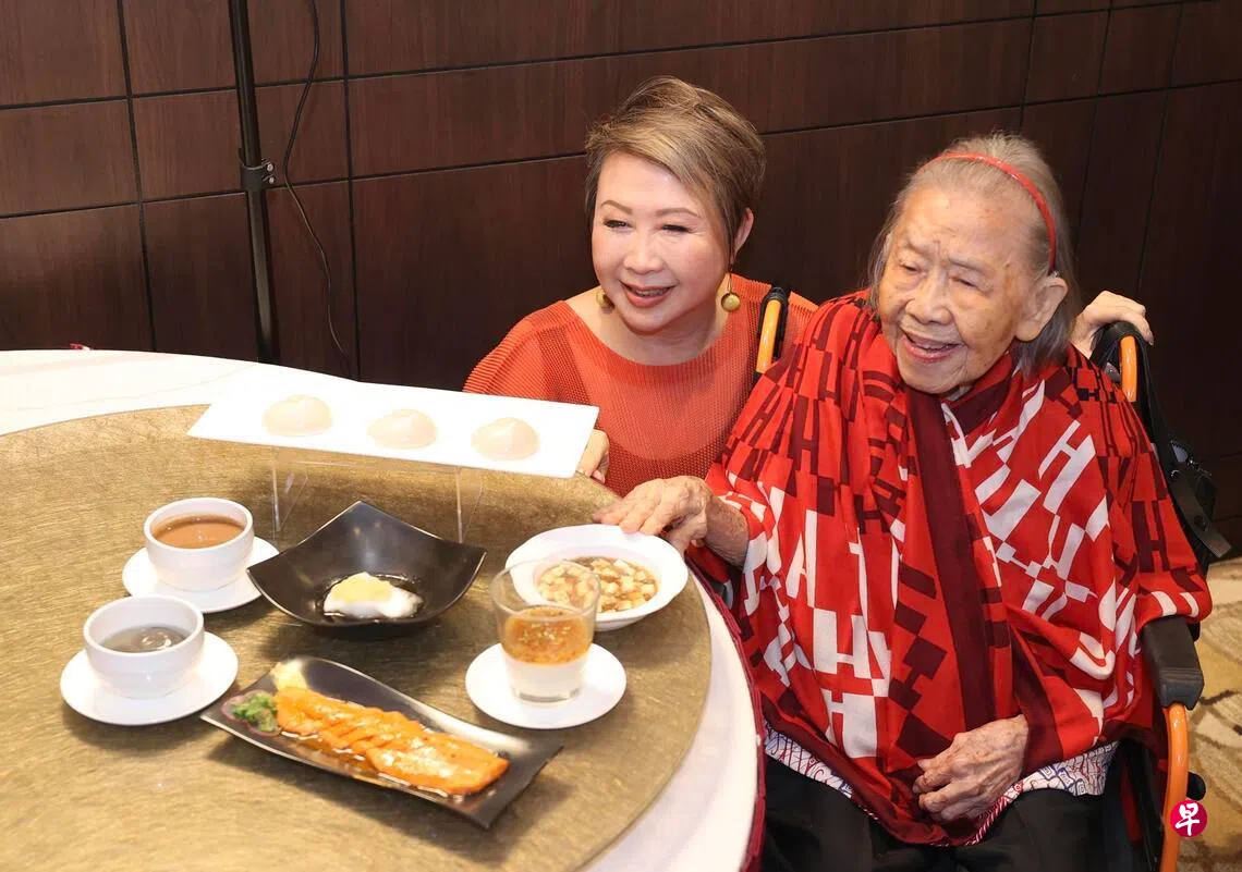 即将迎来百岁生日的陈秋开,因两年前开始吃流质食物,已经很久没能在餐厅用餐,她在品尝了专为吞咽困难者设计的餐食后,连连称赞并竖起了大拇指。