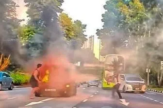 事故发生于上星期四(1月15日)早上约7时45分,地点在宏茂桥1道。根据现场拍摄的视频,一辆黑色宝马汽车在路中央冒出滚滚浓烟,一名男子下车掀起引擎盖查看,发现车头已起火,火势加剧迫使男子连忙后退。