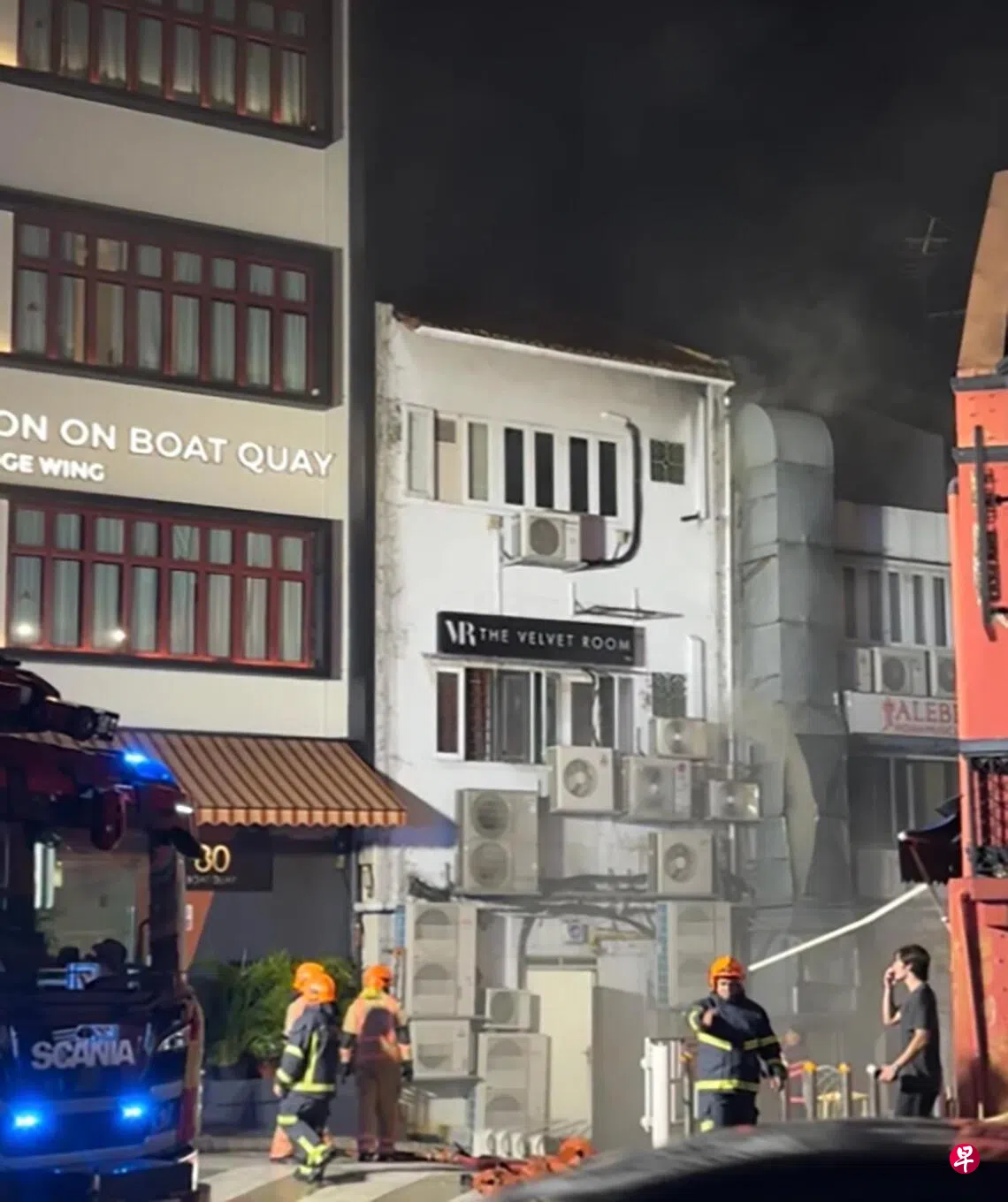 驳船码头一店屋失火,民防部队接获通报后赶到现场灭火。 (取自互联网)