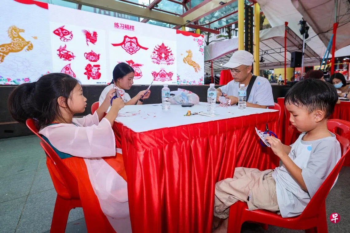 77岁的陈亚玉在路过牛车水广场时,被生动的剪纸艺术作品吸引,刻意留下参与剪纸活动。她笑嘻嘻地说,年纪大了,要剪得很细并不容易。