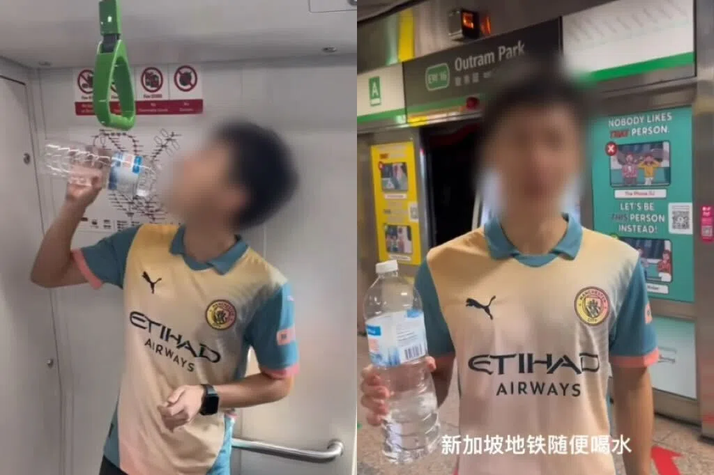 阿嫂在地铁里喝水乱吐10次,车厢乘客纷纷闪避,最终一名妇女挺身而出抢夺水瓶。