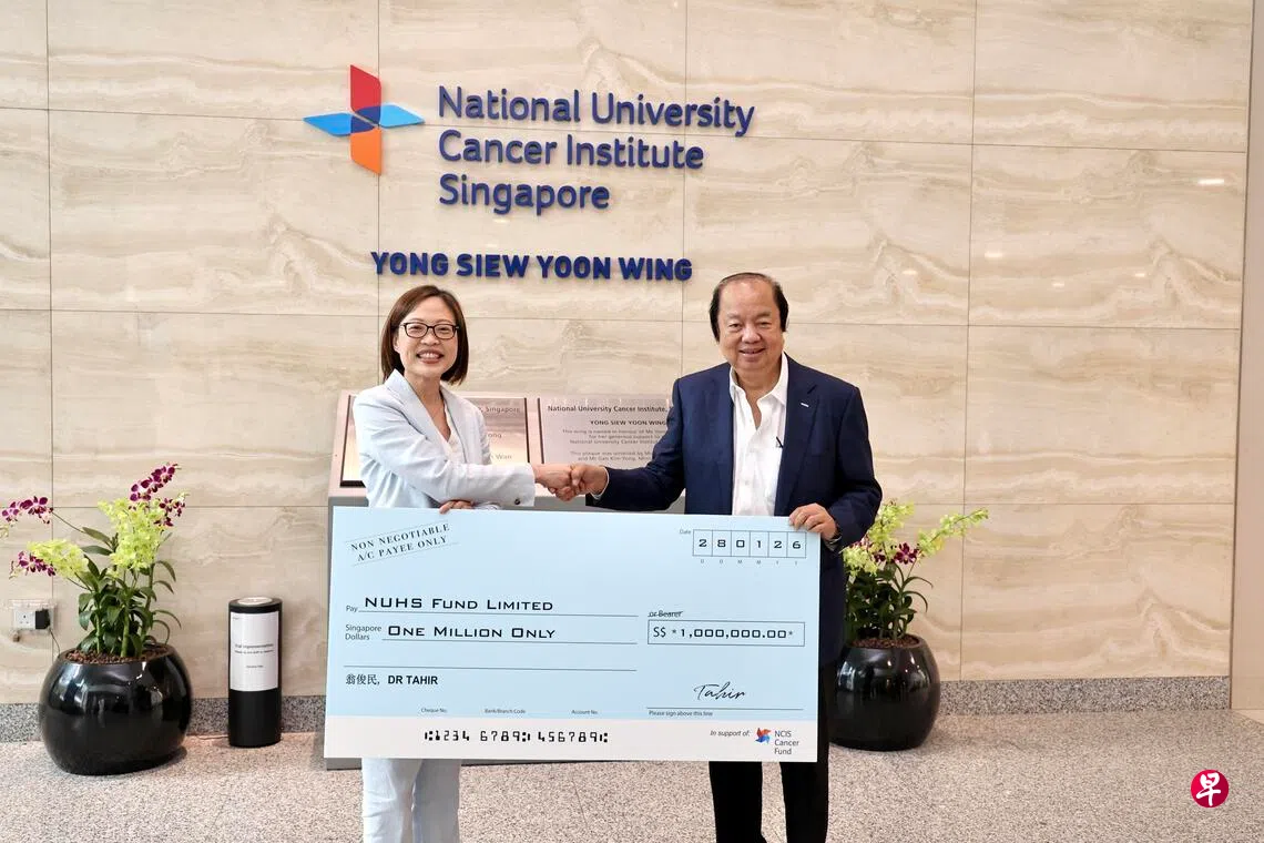 捐赠仪式星期三(1月28日)在国大医院医疗中心举行,国大癌症中心总主任徐清燕客座副教授代表中心,从翁俊民手中接过100万元善款支票。