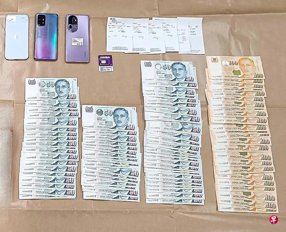 警方查获约6000元现金、九张提款卡、三台手机,以及一张未使用的电话卡作为证物。