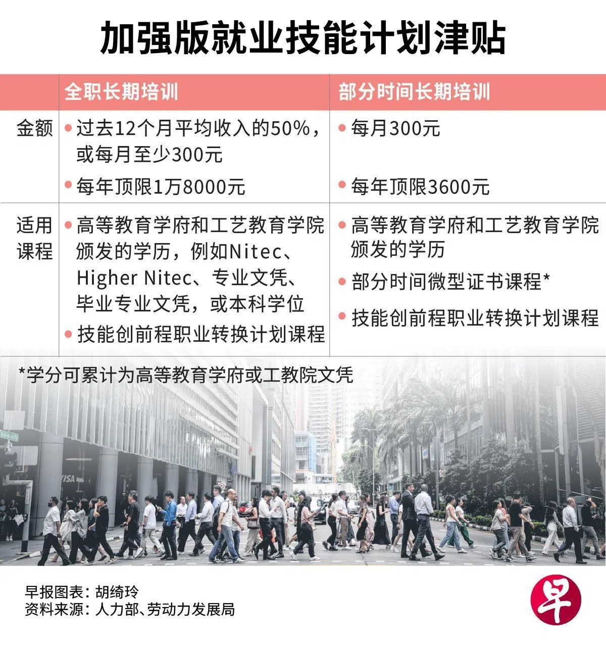 文告说:“加强版就业技能计划将为符合条件的员工提供资助,帮助他们更有系统地进行长期的再培训和技能提升,从而争取更好的就业机会。”