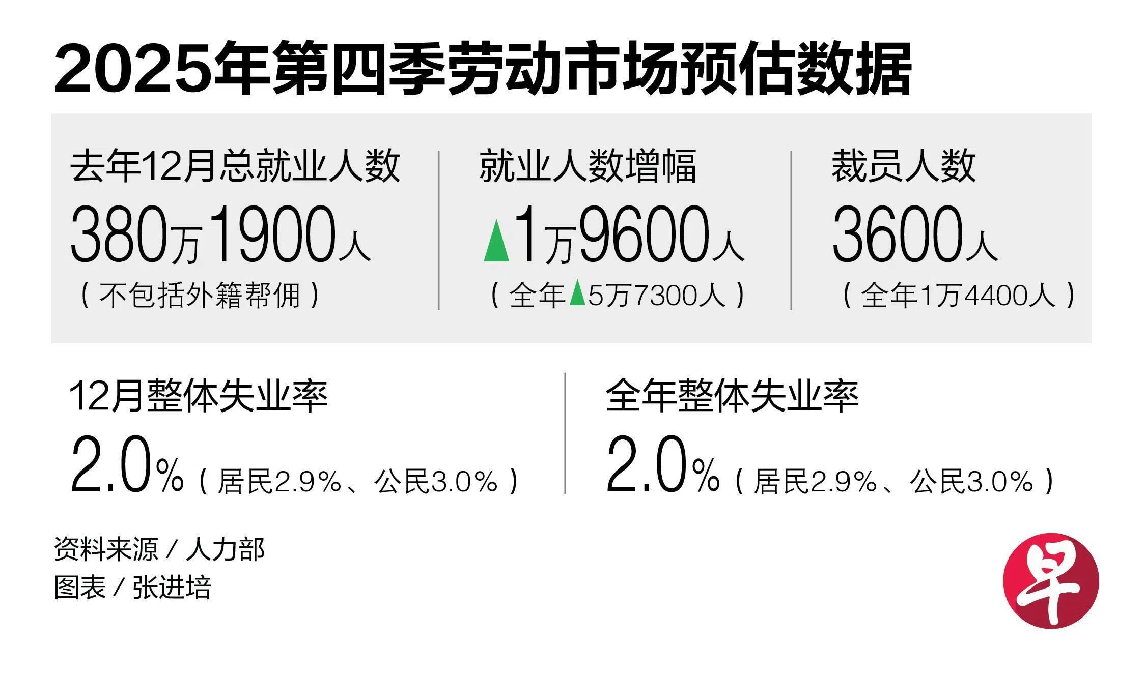 人力部星期四(1月29日)公布2025年第四季《劳动市场报告》预估数据。多项劳动数据向好,其中就业人数已连续17个季度增加,失业率也维持在低位。