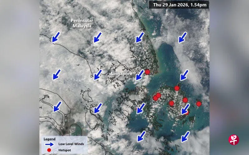 贴文指出,印度尼西亚的民丹岛也发现数个火点。但民丹岛处于下风向,那里的火点产生的烟雾不太可能对新加坡造成直接影响。