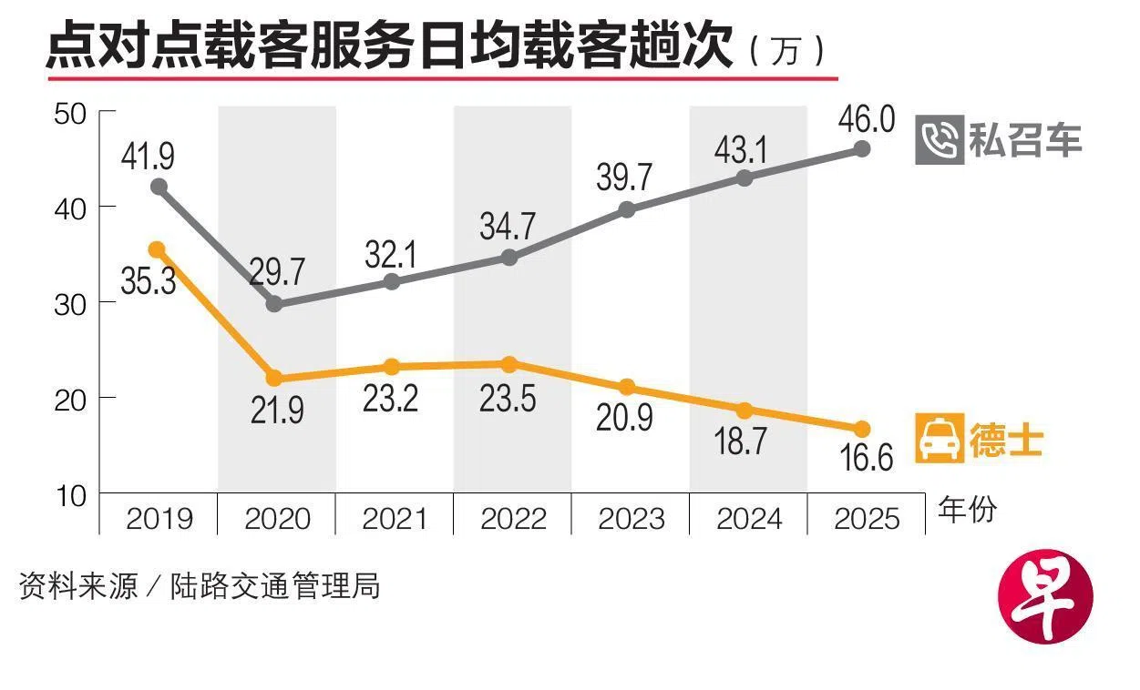 德士趟次下滑 私召车持续增长
