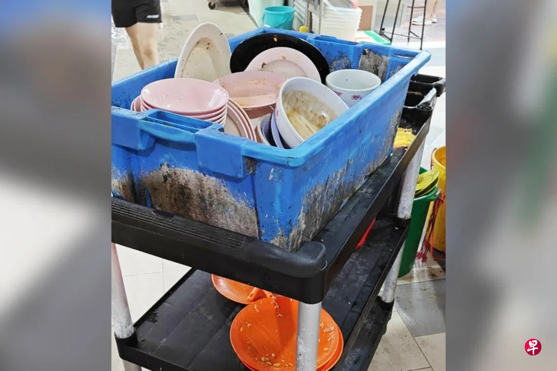 有公众向《新明日报》申诉,指宏茂桥10道第527座静山巴刹与熟食中心的清洁工,用来装脏碗盘的塑料盆上有着太多污渍,看了令人作呕。