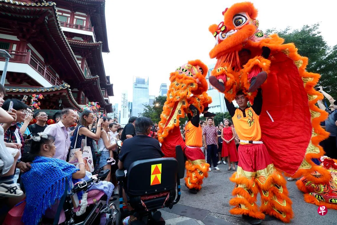 炮竹声声响起,灯饰璀璨点亮,牛车水正式进入迎接丙午马年的倒数时刻。
