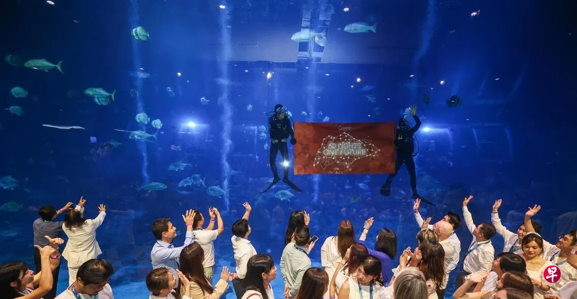 “60盏灯,一个未来”(60 Lights, One Future)活动的捐助者、受惠儿童、青少年以及其他伙伴,星期六(1月31日)齐聚圣淘沙的新加坡海洋生态馆(Singapore Oceanarium),为这个捐款行动举行表彰典礼。