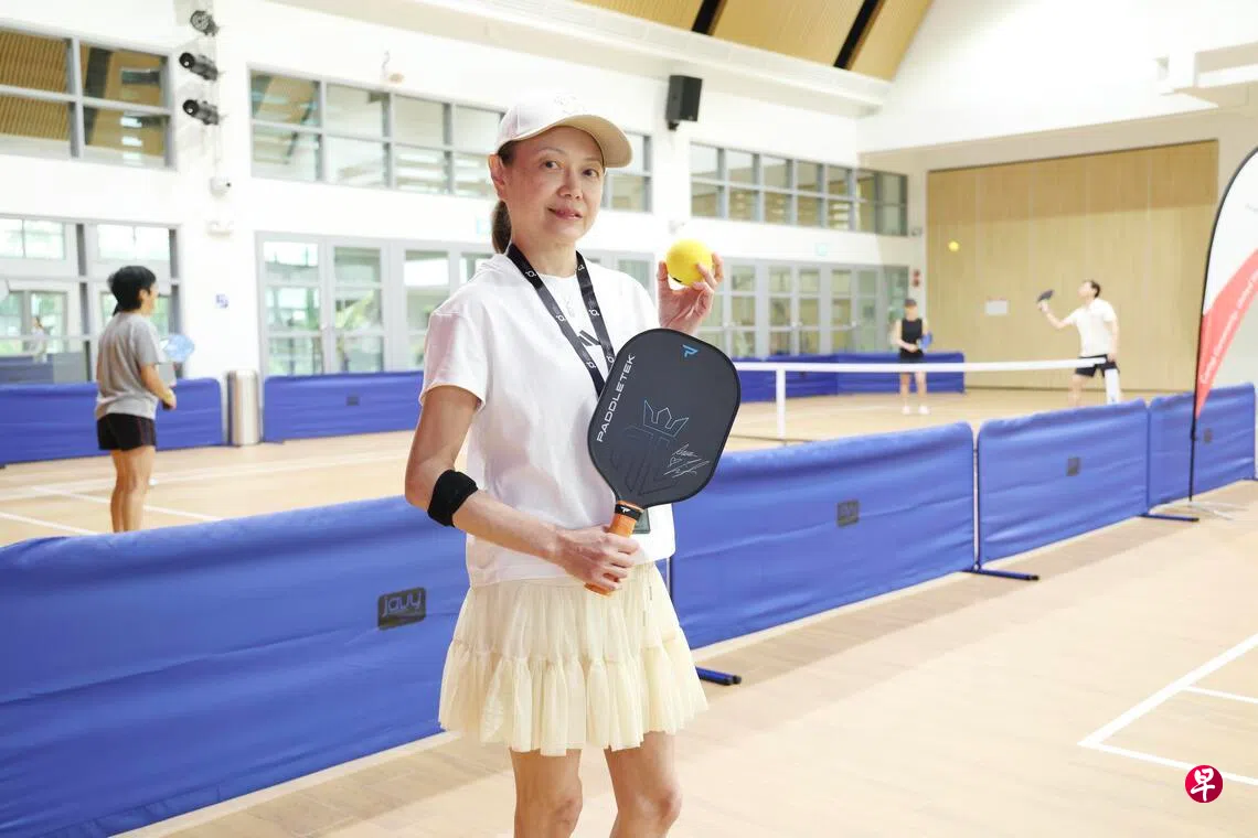 陈宝玲(59岁)向来爱运动,练过泰拳、拳击,也打过羽毛球。2017年,她应亲戚之邀在乌美社区体育馆第一次体验了匹克球后,很快就爱上这项相对温和的球类运动。