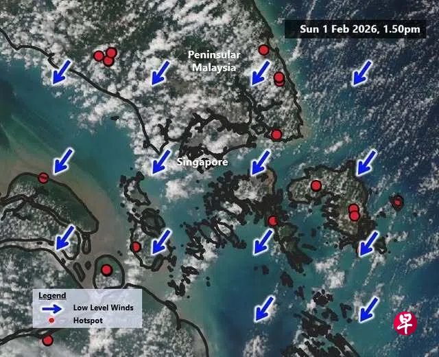 新加坡和周边地区星期天(2月1日)仍持续有数个火点,但未见烟雾。空气素质维持在良好及中等水平。