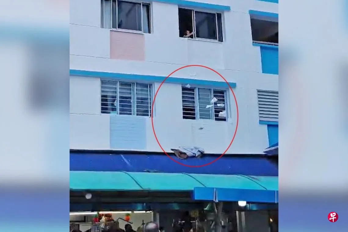 她说,有人从三楼的一个单位内,将多件大型物品移到窗边,包括行李箱。“窗外还好有遮雨棚挡着,对方丢了衣物、纸巾和毛毯,庆幸没丢下行李箱。随后,就有警员抵达现场。”