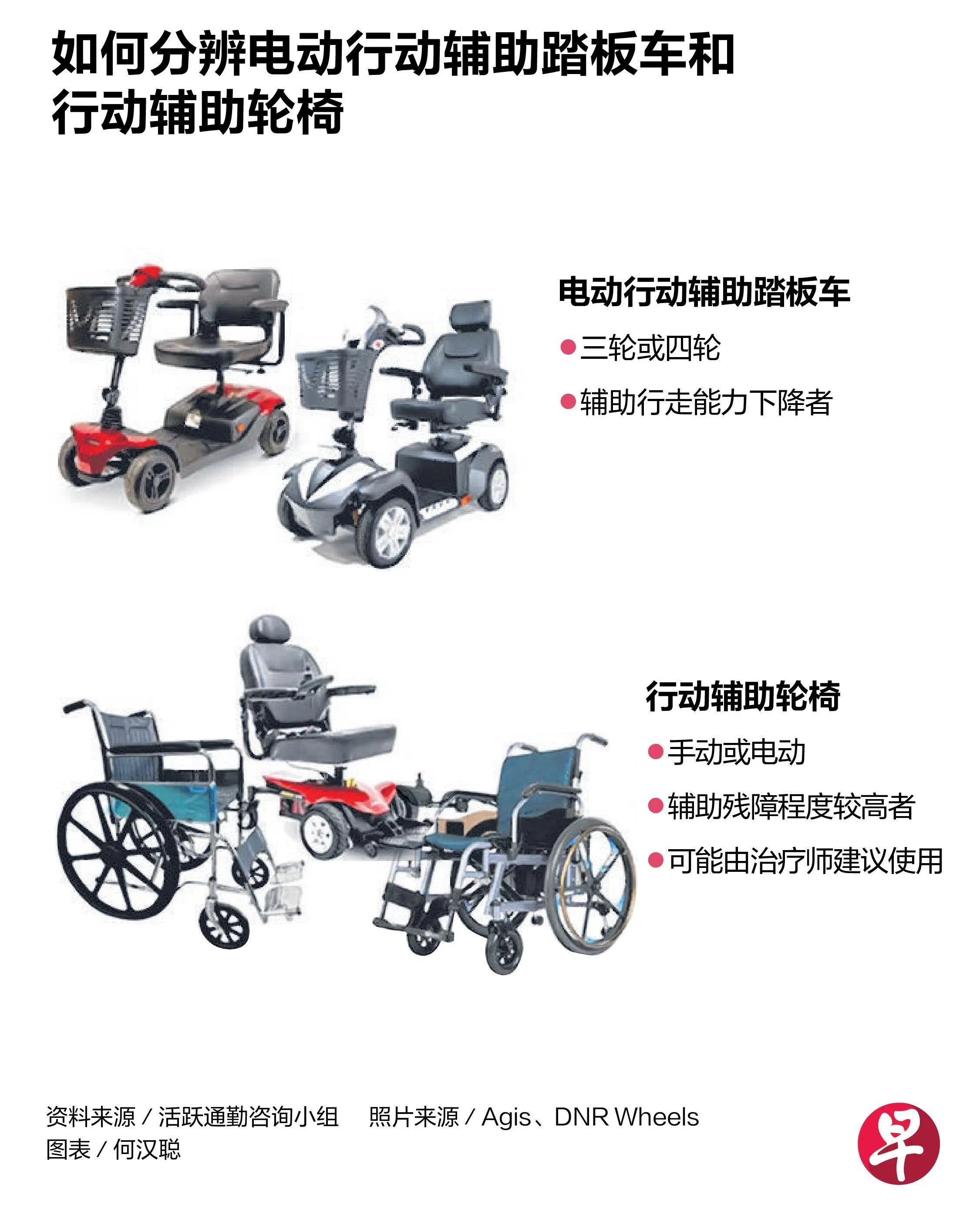 PMA包括电动行动辅助踏板车(mobility scooter,简称电动助行车),以及电动轮椅(motorised wheelchair)。
