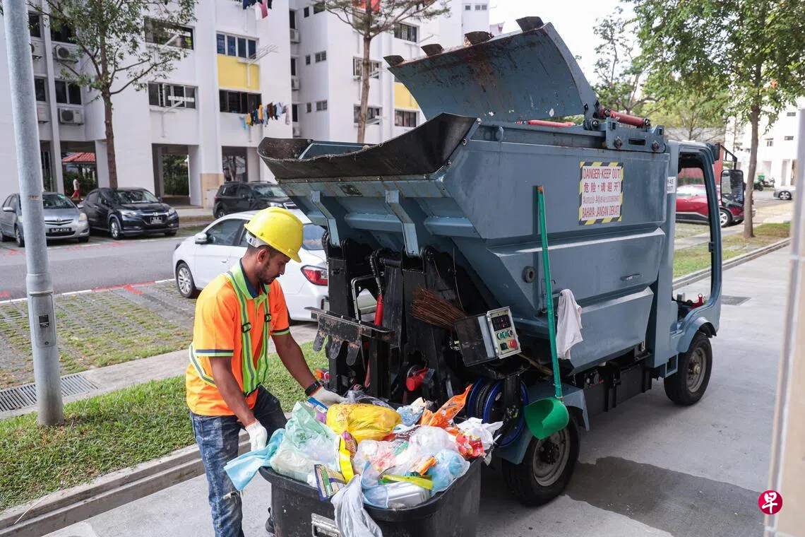 义顺市镇理事会答复《联合早报》询问时说,回收车是由清洁承包商提出的方案,有助提升作业效率、节省人力。市镇会在评估效益后,去年11月1日开始采用。