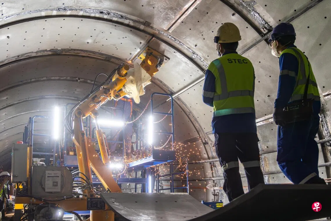 为更安全有效地施工,陆路交通管理局首次在隧道工程中采用机械臂,辅助安装钢板。