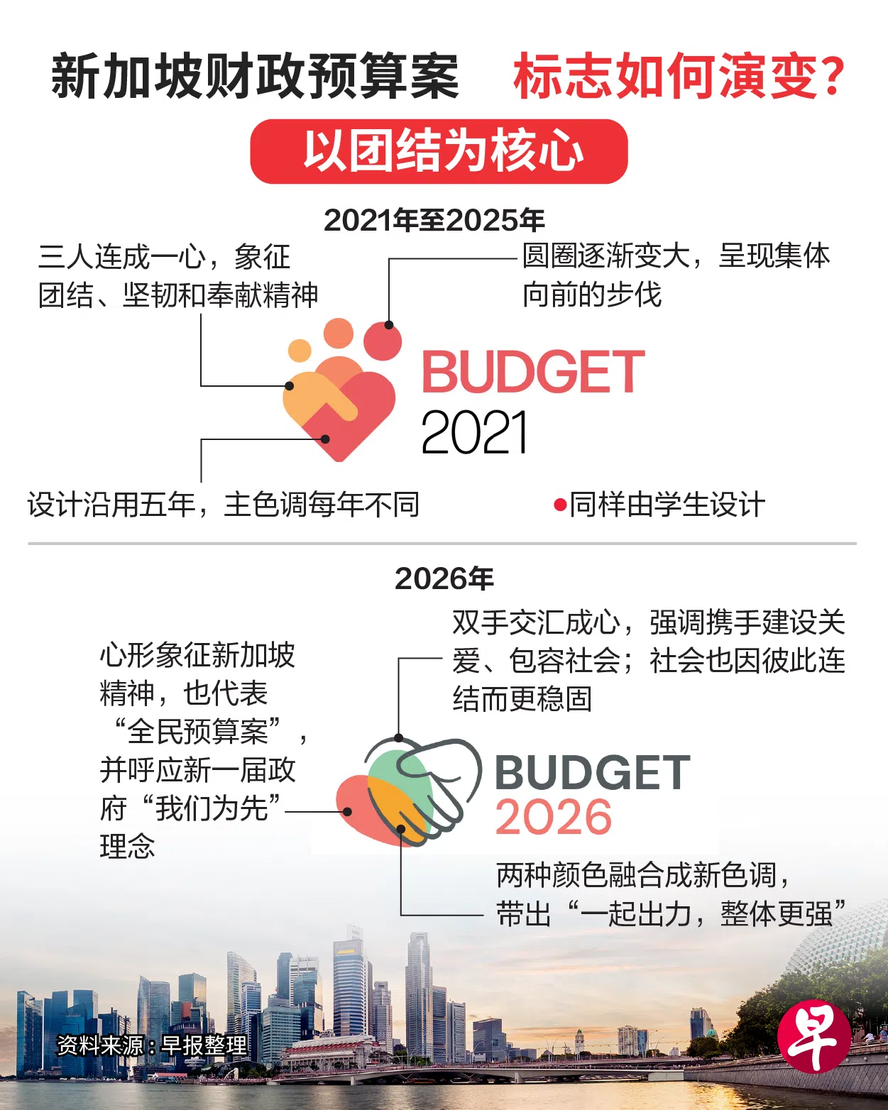 根据预算案官网资料,新标志以心形为核心,强调这是一份属于全民的预算案,也点出集体的新加坡精神。标志中的第二个心形由一双手交汇而成,强调携手同行,表达建设关爱、包容社会的方向。