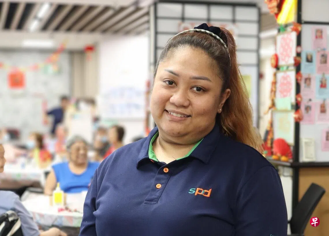 40岁的哈米达(Hamidah Binte Mohamad Kassim)是中心的医疗护理助理,加入SPD约三年。平日里,她协助年长者进行行动训练、服药和如厕,也支援各类小组活动。
