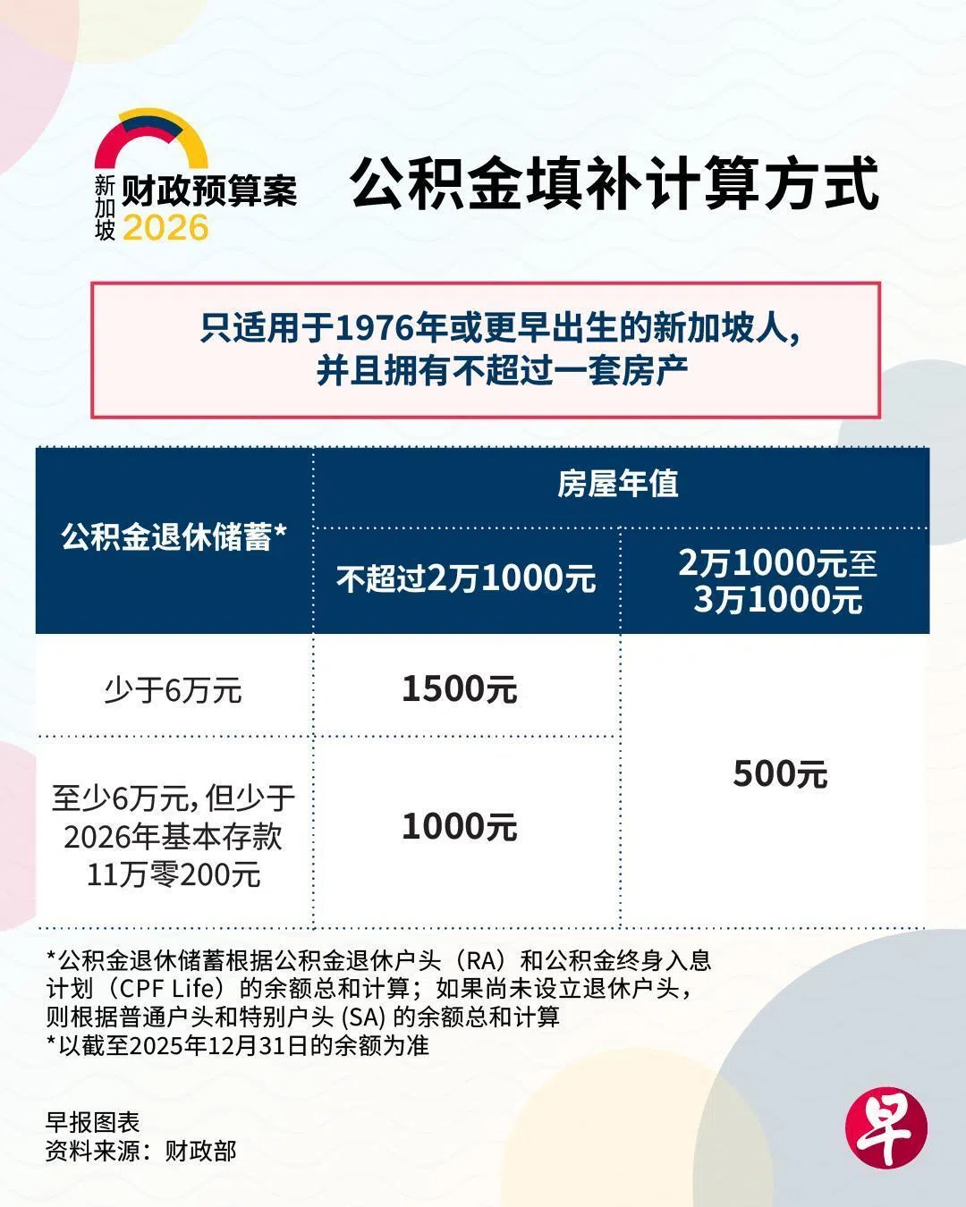 年满50岁、公积金退休储蓄低于基本存款的年长者,可在今年12月获高达1500元的公积金填补。