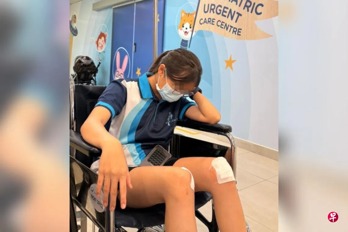 尽管途中受伤,女儿仍坚持如常到校上课,直到与同学会合后,对方发现她的膝盖正在流血,她才前往学校办公室寻求协助。