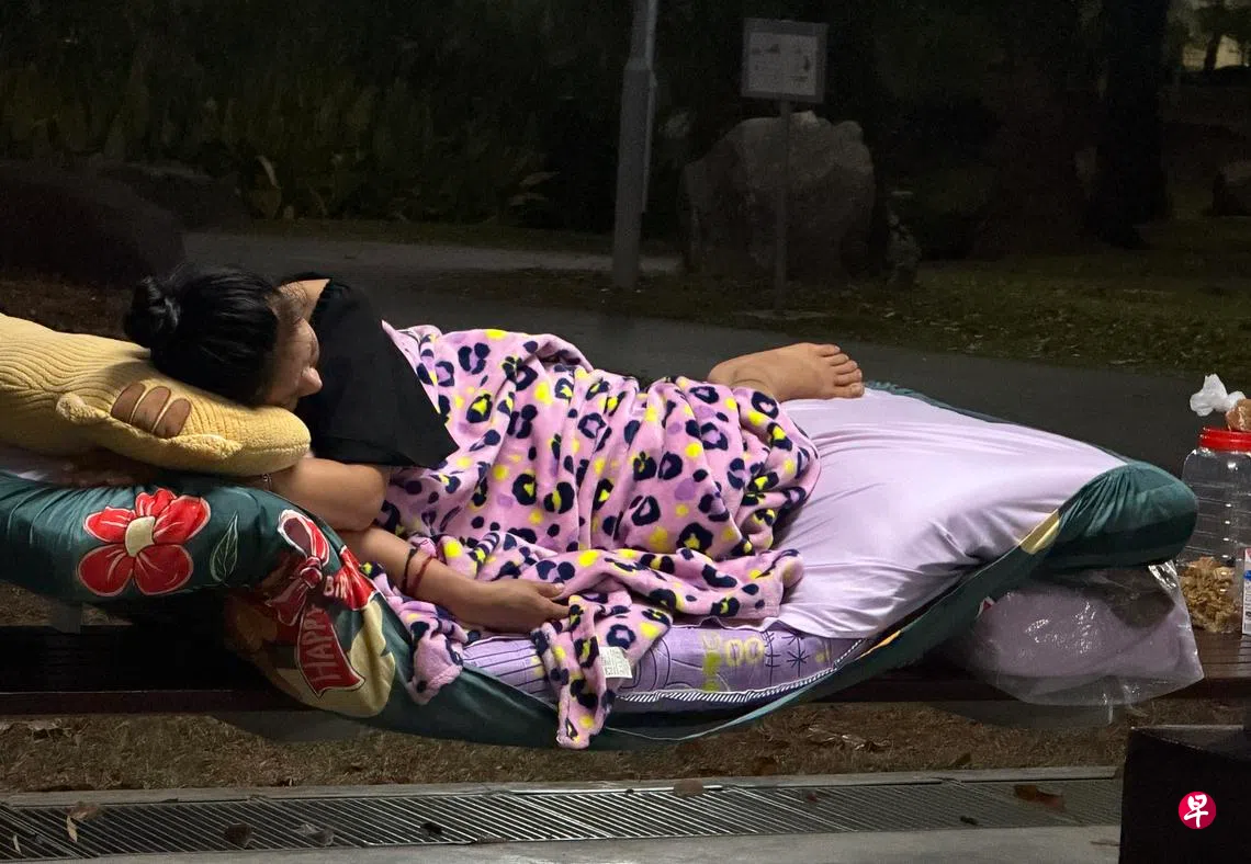 记者星期五晚上9时许再度走访,发现这名女子正在凉亭处酣睡。对方看似40多岁,她会说华语,自称姓庄,来自越南。她承认这两个月确实在公园露宿。