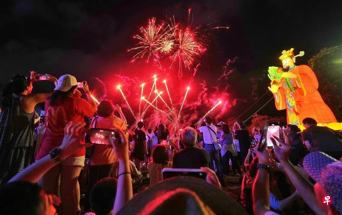 以红色和金色为主色调的烟火表演,配合音乐与灯光秀,将现场氛围推向高潮。人们或举起相机,定格这个喜庆时刻,或拿起手机,与家人朋友在烟花下合影留念。