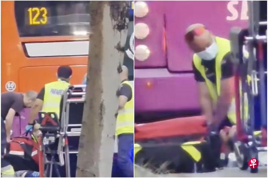 根据网上流传的视频,涉事巴士是由新捷运运营的123号巴士。一名路人倒在巴士后面,几名医护人员正在轮流为他进行心肺复苏。身穿新捷运制服的巴士车长以及数名路人站在一旁的人行道上,看着医护人员展开抢救。